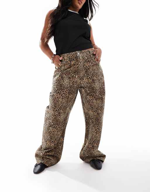 ASOS DESIGN Curve – Weite Jeans mit Leopardenmuster