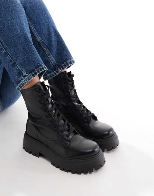 ASOS DESIGN – Ava – Flache Schnürstiefel in Schwarz, weite Passform