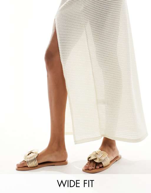 ASOS DESIGN Wide Fit – Fifi – Flache, gewebte Pantoletten in Gold, weite Passform
