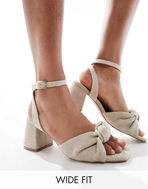 ASOS DESIGN Wide Fit – Hansel – Sandaletten in Steinbeige mit Zierknoten und mittelhohem Absatz, weite Passform