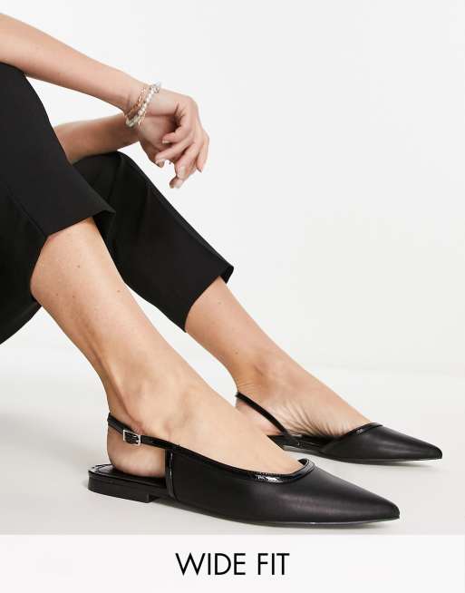 ASOS DESIGN Wide Fit – Lane – Flache Ballerinas in Schwarz mit Fersenriemen