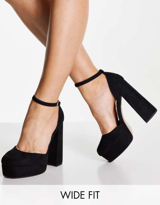 ASOS DESIGN Wide Fit – Priority – Schuhe in Schwarz mit hohem Blockabsatz und Plateausohle
