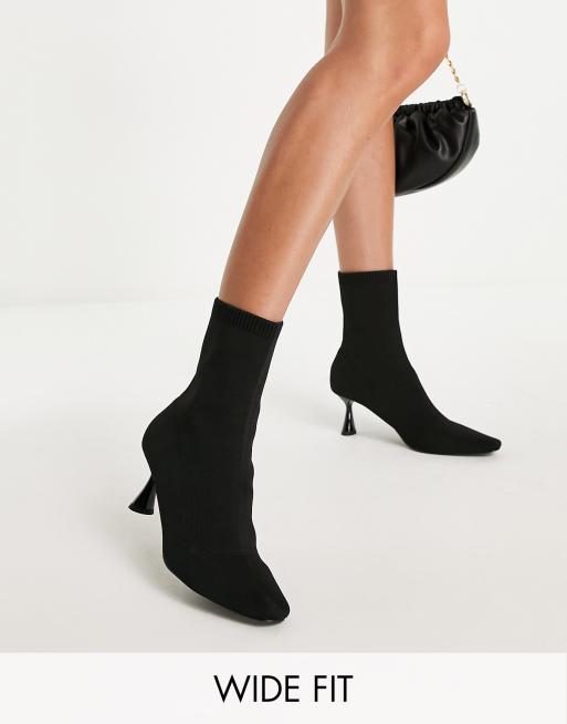 ASOS DESIGN Wide Fit – Rightly – Gestrickte Sock-Boot-Stiefel in Schwarz mit Absatz, weite Passform