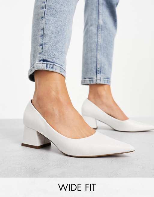 ASOS DESIGN Wide Fit – Saint – Schuhe in Kroko-Wollweiß mit mittelhohem Blockabsatz, weite Passform