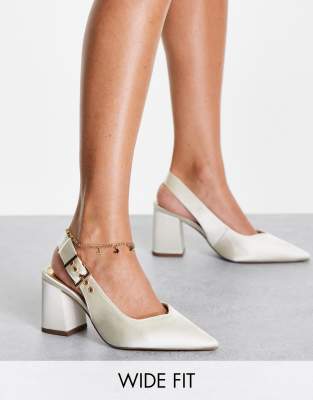 ASOS DESIGN – Wide Fit – West – Pumps mit Fersenriemen und Blockabsatz in weiter Passform, Elfenbeinweiß