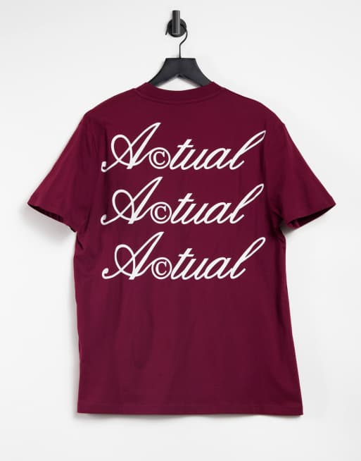 ASOS Actual – Burgunderrotes T-Shirt mit Schriftzug hinten