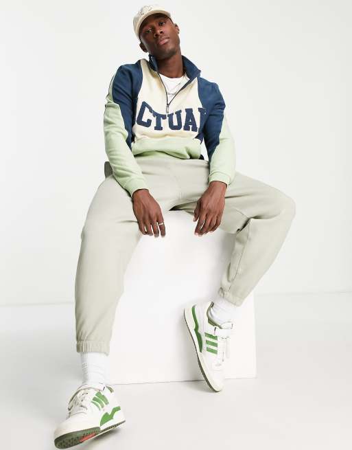 ASOS Actual – Grünes Oversize-Sweatshirt aus Polarfleece mit Stehkragen und Logo im Farbblockdesign