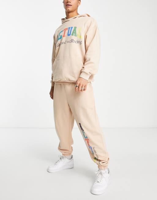 ASOS Actual – Lockere Jogginghose in Beige mit mehrfarbigem Logoprint, Kombiteil