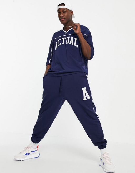 ASOS Actual – Oversize-Kombiteil in Marineblau mit Logo und Paspeldetail
