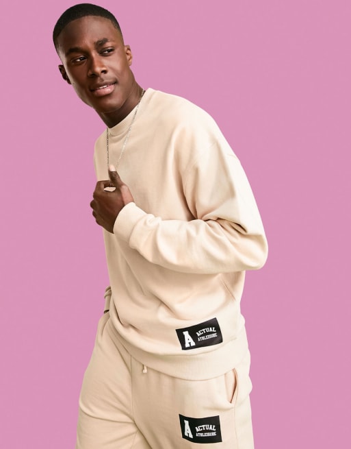 ASOS – Actual – Oversize-Sweatshirt in Sandbeige mit Logoaufnäher