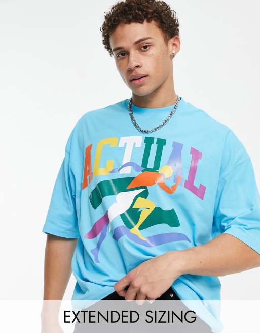 ASOS – Actual – Oversize-T-Shirt in Blau mit Läufer-Grafikprint auf der Vorderseite