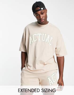 ASOS Actual – Oversize-T-Shirt in Natur mit Logoprint, Kombiteil