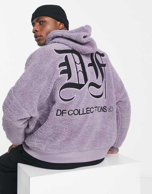ASOS – Dark Future – Extremer Oversized-Kapuzenpullover aus Teddyfell in Flieder mit aufgesticktem Gothic-Logo
