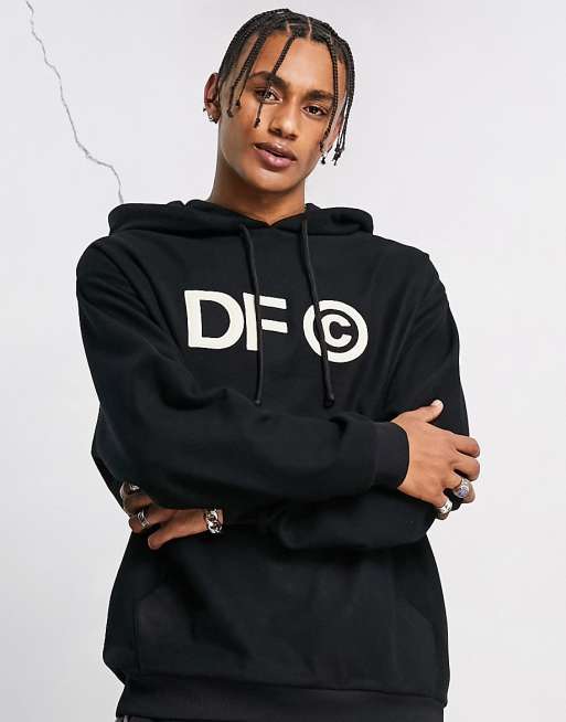 ASOS Dark Future – Oversize-Kapuzenpullover aus Polar-Fleece in Schwarz mit Logo-Applikation vorne