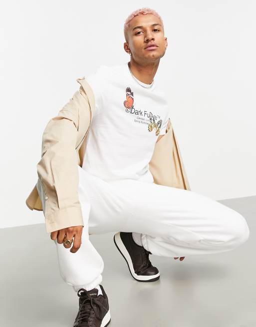 ASOS – Dark Future – T-Shirt mit Schmetterling und -Logoprint in Weiß