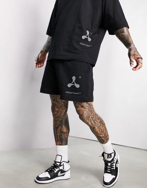 ASOS – Dark Future x Cream – Kombiteil in Schwarz mit reflektierendem Logo-Print