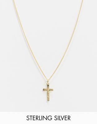 ASOS DESIGN – 14-karätig vergoldete Halskette aus Sterlingsilber mit Kreuzanhänger