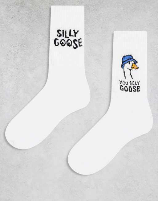 ASOS DESIGN – 2 er-Pack Socken in Weiß mit „Silly Goose“-Grafik