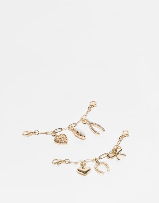 ASOS DESIGN – 2er-Pack Anhänger für Schuhe und Accessoires mit verschiedenen Designs in Gold-Optik