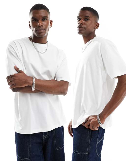 ASOS DESIGN – 2er-Pack Basic-T-Shirts in Weiß mit Oversize-Schnitt