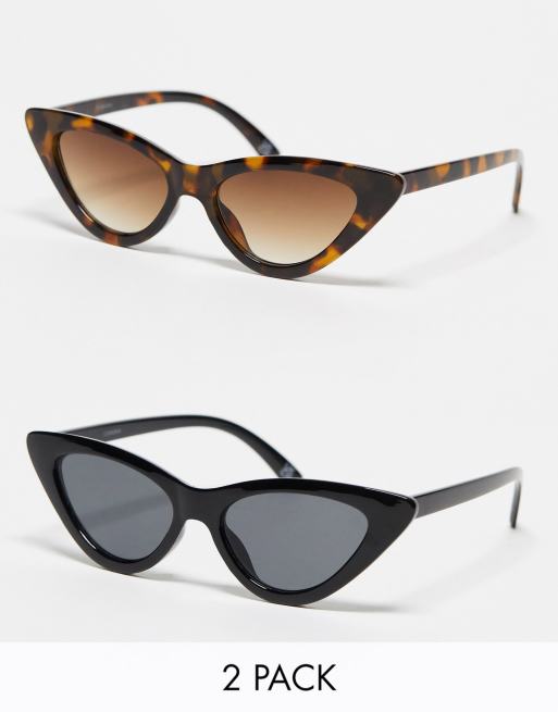ASOS DESIGN – 2er-Pack Cat-Eye-Sonnenbrille in Schwarz und mit Schildplattoptik