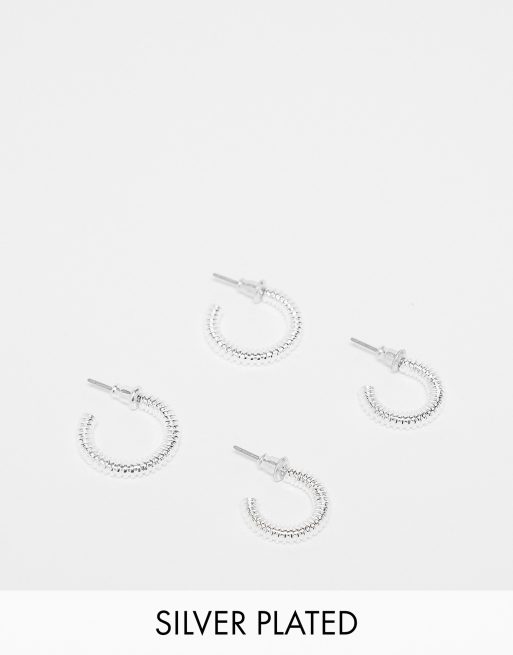 ASOS DESIGN – 2er-Pack Creolen aus echter Silberbeschichtung mit Spiralstruktur