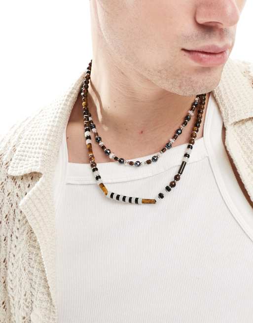 ASOS DESIGN – 2er-Pack Festival-Halskette mit Halbedelsteinperlen in Braun