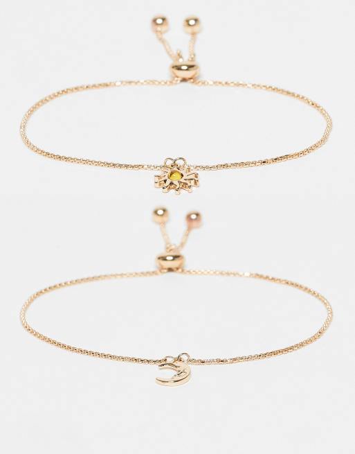 ASOS DESIGN – 2er-Pack goldfarbene Armbänder mit Sonne- und Mond-Design