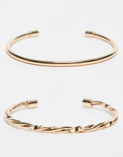 ASOS DESIGN – 2er-Pack goldfarbene Armreife mit schlichtem und verdrehtem Design