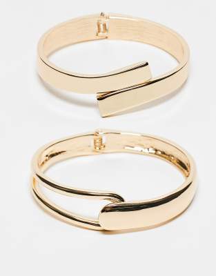 ASOS DESIGN – 2er-Pack goldfarbene Armreife mit Wickeldetail