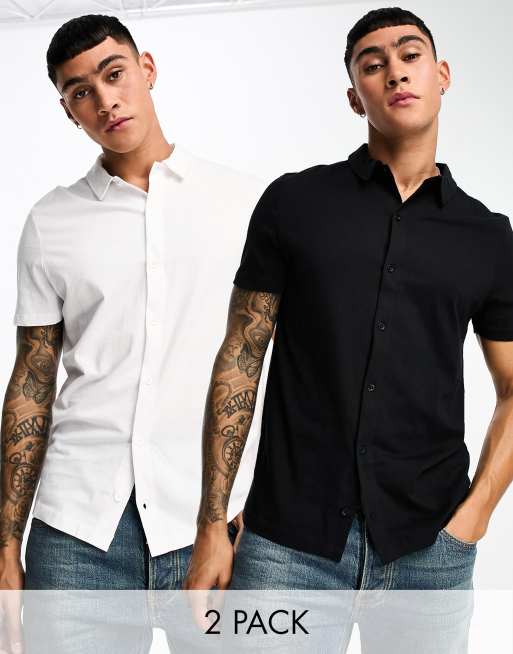 ASOS DESIGN – 2er-Pack Jersey-Hemden in Weiß und Schwarz