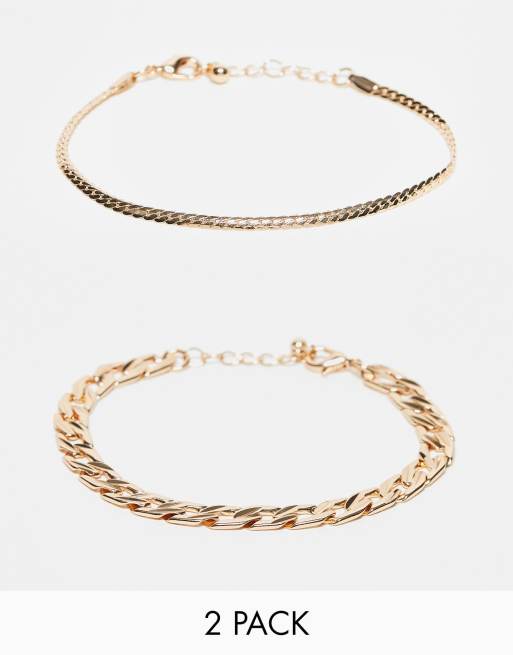 ASOS DESIGN – 2er-Pack Kettenarmbänder in Goldoptik