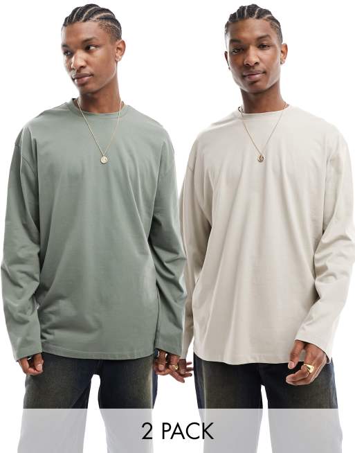 ASOS DESIGN – 2er-Pack langärmlige Oversize-Shirts in Khaki und Taupe