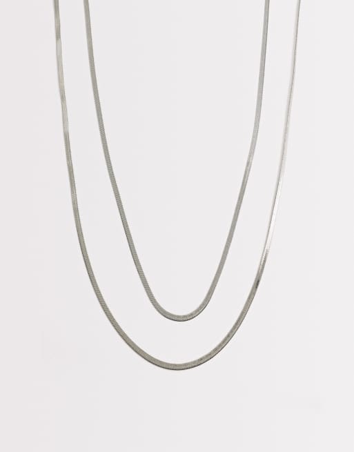 ASOS DESIGN – 2er-Pack lange Schlangenketten in Silberoptik