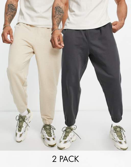 ASOS DESIGN – 2er-Pack Oversize-Jogginghosen in Hafer meliert und verwaschenem Schwarz