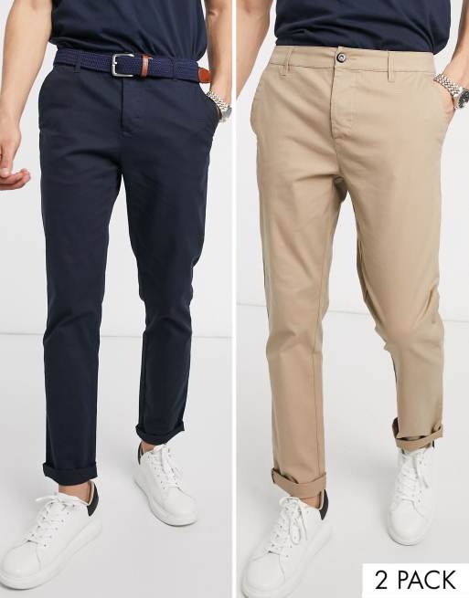 ASOS DESIGN – 2er Pack schmal geschnittene Chinos in Marine und Stone, RABATT
