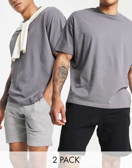 ASOS DESIGN – 2er-Pack schmale Jerseyshorts in Schwarz/Kalkgrau