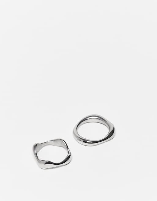ASOS DESIGN – 2er-Pack silberfarbene Bandringe aus wasserfestem Edelstahl im geschmolzenen Design