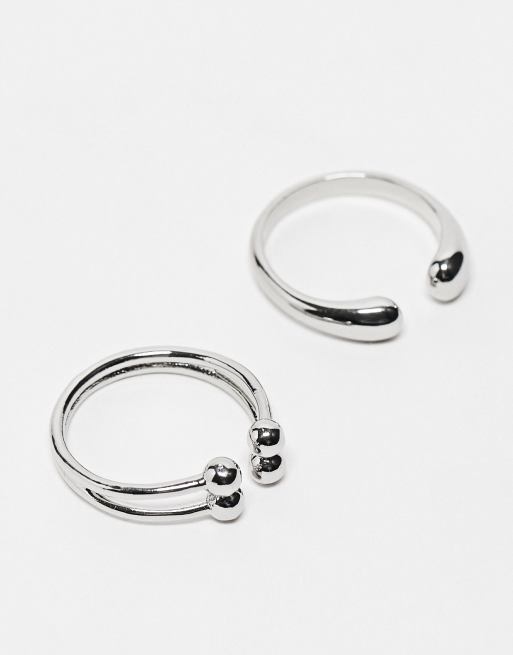ASOS DESIGN – 2er-Pack silberfarbene offene Ringe