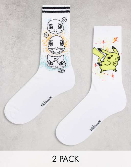 ASOS DESIGN – 2er-Pack Sportsocken in Weiß mit Pokémon-Motiv