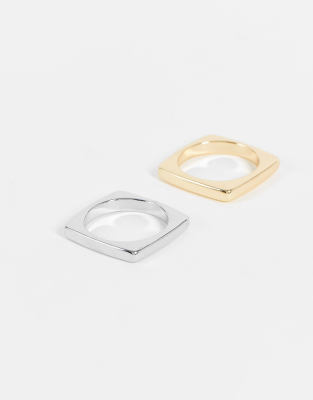 ASOS DESIGN – 2er-Pack Steckringe in Silber- und Goldoptik