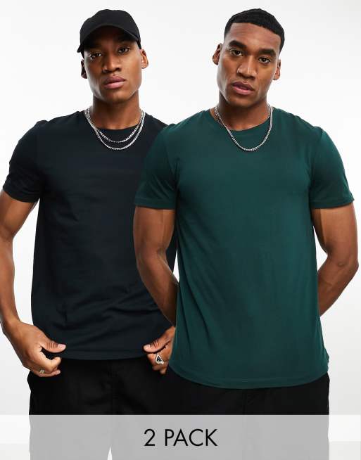 ASOS DESIGN – 2er-Pack T-Shirts in Grün und Schwarz mit Rundhalsausschnitt
