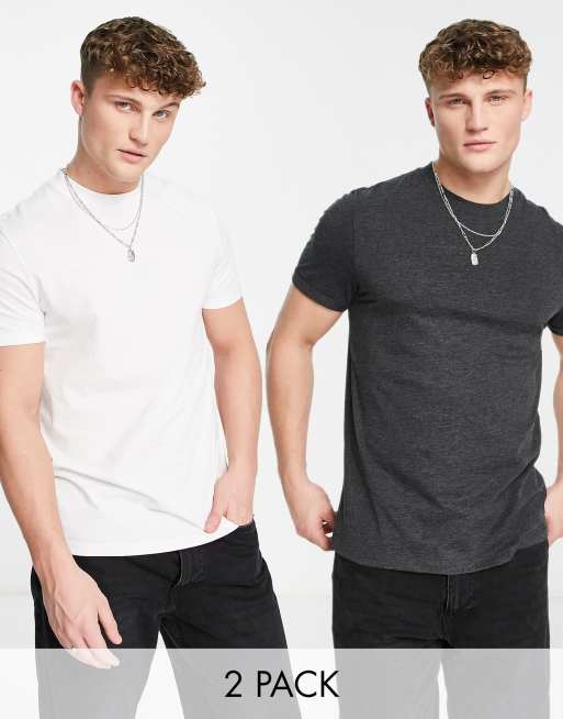 ASOS DESIGN – 2er-Pack T-Shirts mit Rollärmeln in unterschiedlichen Farben