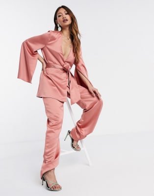 ASOS DESIGN – 3-teiliger Anzug aus weichem Satin in Rose-Blush
