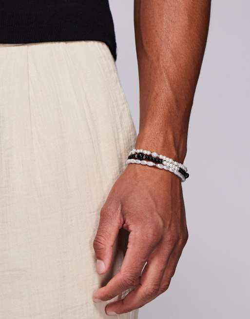 ASOS DESIGN – 3er-Pack Armbänder mit Kunstperlen in Cremeweiß