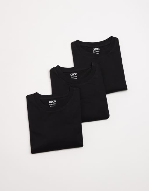 ASOS DESIGN – 3er-Pack Basic-T-Shirts in Schwarz mit Regular-Fit-Schnitt