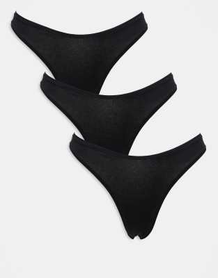 ASOS DESIGN – 3er-Pack Baumwoll-String-Tangas in Schwarz