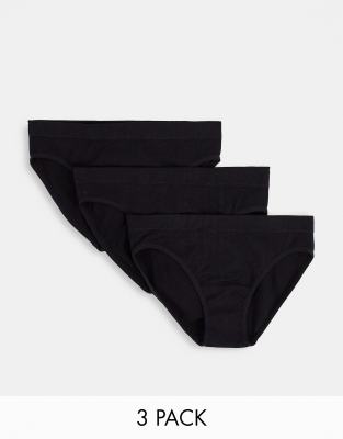 ASOS DESIGN – 3er-Pack gerippte, nahtlose Unterhose in Schwarz