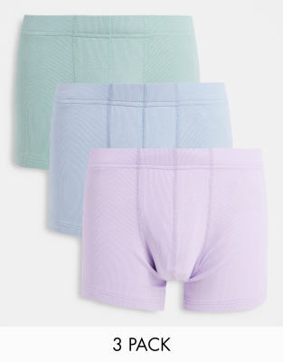 ASOS DESIGN – 3er-Pack gerippte Unterhosen in Pastellfarben