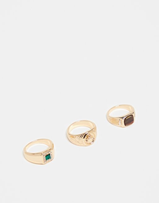 ASOS DESIGN – 3er-Pack goldfarbene Siegelringe mit Tigeraugen-Zierstein
